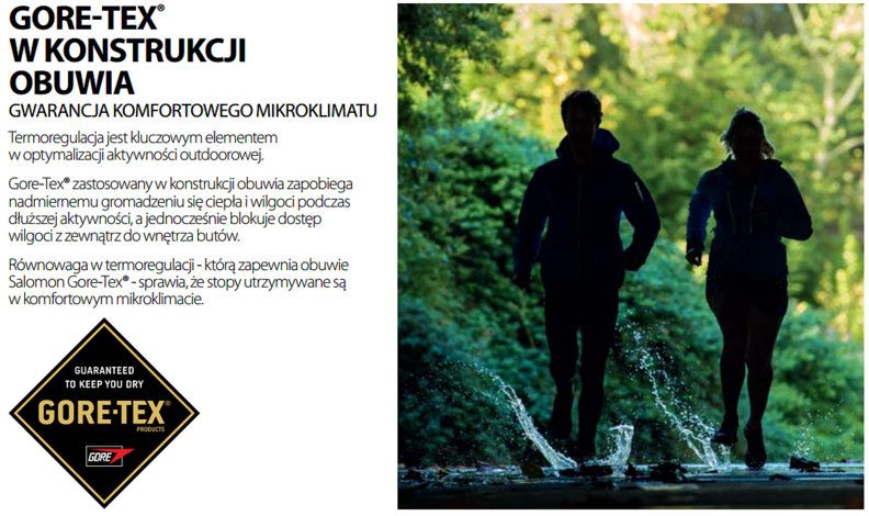 Gore-Tex wraz z materiałem wierzchnim tworzy skuteczną barierę przed wodą. Gwarantuje to zatem wodoodporność, ale nie tylko. Dzięki tej membranie nasze obuwie nie przemoknie, ale również zapewni oddychalność stopie oraz skutecznie ochroni przed wiatrem. Materiał z membraną to materiał posiadający mikropory, które skutecznie uniemożliwiają przenikanie wody do wewnątrz. Ich wyjątkowa konstrukcja pozwala na wydostanie się nadmiaru ciepła i wilgoci na zewnątrz, dzięki czemu uzyskujemy oddychalność. Wybierając obuwie z membraną Gore-Tex mamy gwarancję ochrony i wysokiego komfortu.