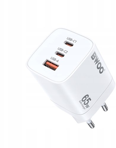 BWOO ładowarka sieciowa 65W PD CDA147 2x USB-C 1x USB biała