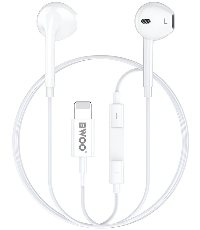 BWOO Przewodowe słuchawki Lightning z regulacją głośności HF179 białe
