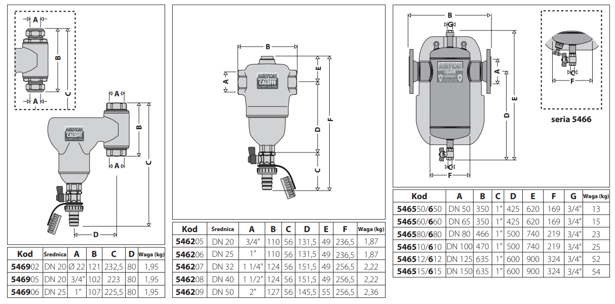 Zanieczyszczenia gromadzone są w komorze o dużej pojemności, co zmniejsza częstotliwość czyszczenia, ich usunięcie może być przeprowadzone podczas normalnej pracy instalacji. Wersja z magnesem przeznaczona jest do oddzielenia związków ferromagnetycznych z instalacji. Urządzenie jest zdolne do usuwania nawet najmniejszych cząstek, przy tym nie powoduje wysokich strat ciśnienia w instalacji. Wersje kołnierzowe DIRTCAL i DIRTMAG (średnice od DN 50 do DN 150) są wyposażone w wstępnie formowane łupki izolacyjne, aby zapewnić idealną izolację termiczną. Urządzenia mogą być stosowane w instalacjach grzewczych i chłodniczych.