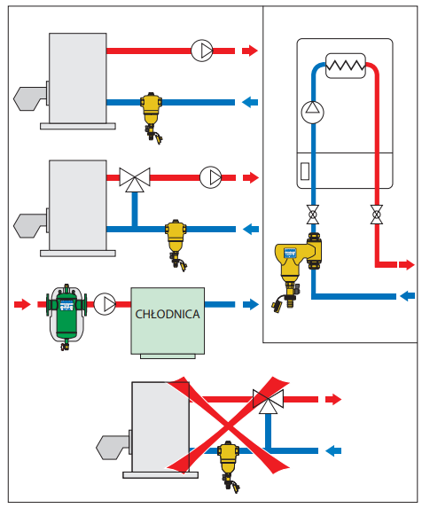 Urządzenia tego typu oddzielają zanieczyszczenia w zamkniętych instalacjach centralnego ogrzewania, głównie cząstki piasku i rdzy.