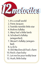 Wyposażona w pałąk z lusterkiem z mocowaniem do łóżeczka i nową pozytywkę. Delikatne dźwięki aż 12 kołysanek do wyboru uspokajają dziecko, ułatwiając zasypianie, a żywe kolory rozwijają koordynację wzrokową i motoryczną maluszka.