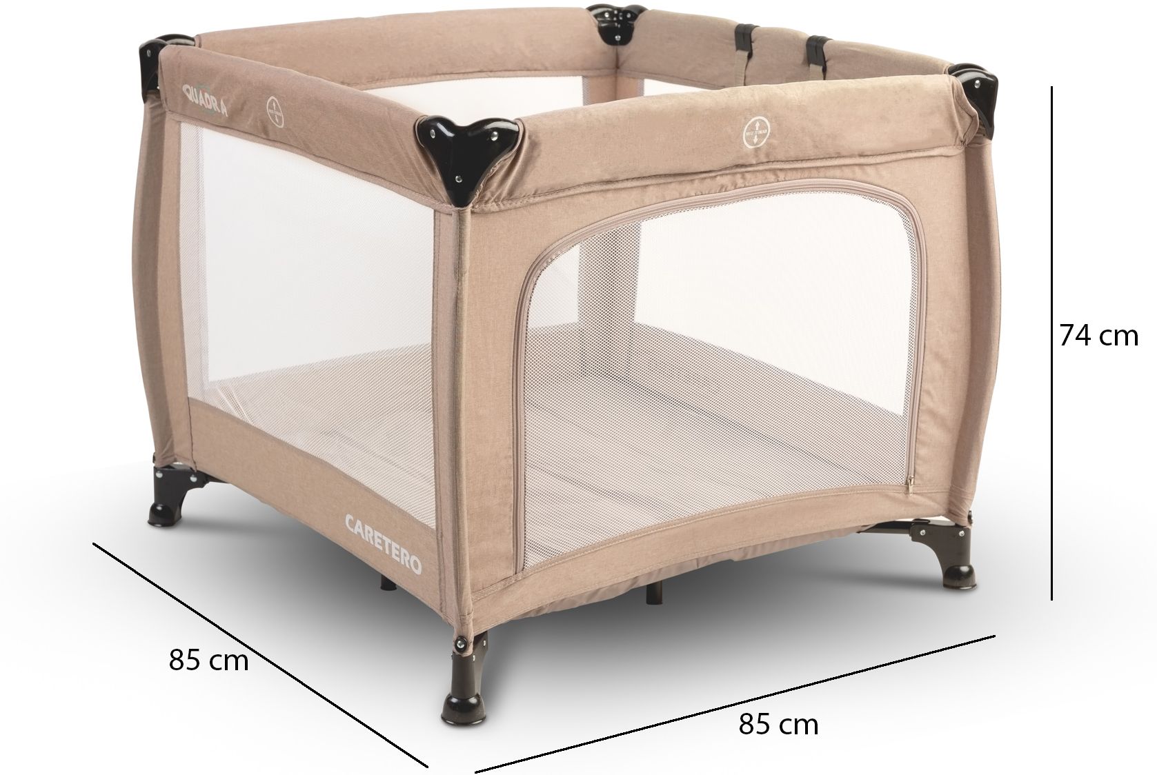 Kojec Quadra to idealna propozycja dla rodziców planujących wyjazd na urlop lub wypoczynek poza domem. Kojec idealnie sprawdzi się jako miejsce zabawy Twojego dziecka oraz zapewni zdrowy i spokojny sen, zarówno na świeżym powietrzu, jak i w domowym zaciszu. Kojec Caretero Quadra odznacza się prostą, solidną konstrukcją, łatwością użytkowania, a także niebanalnym designem i świetną ceną, która zachwyci każdego rodzica. Lekki, praktyczny, łatwy w rozkładaniu i składaniu kojec kwadratowy. Quadra sprawdza się idealnie jako miejsce zabaw i odpoczynku w domu oraz w podróży.