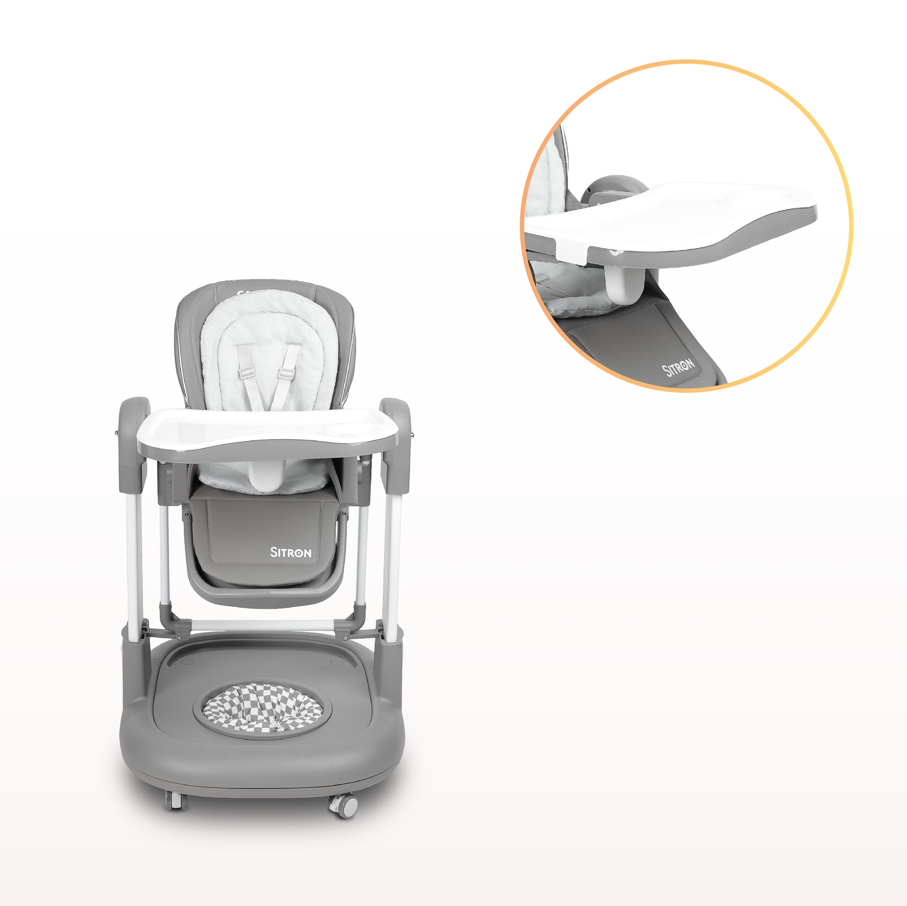 Wyjmowana, podwójna tacka ułatwia utrzymanie czystości podczas posiłków, a regulacja wysokości pozwala dopasować krzesełko do stołu. Pasy bezpieczeństwa i dodatkowa, miękka wkładka zapewniają stabilną pozycję dla Twojego malucha, a łatwa w czyszczeniu tapicerka sprawia, że sprzątanie jest szybkie i łatwe.
