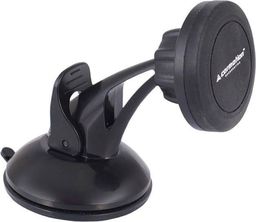 Uchwyt magnetyczny mocowany za pomocą przyssawki. Wyposażony w silny magnez, który utrzyma większośc urządzeń mobilnych. W zestawie znajdują się dwie metalowe płytki do przyklejenia na urządzeniach z niemetalową obudową.