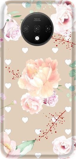 CaseGadget CaseGadget ETUI NADRUK BIAŁE SERCA I RÓŻE ONEPLUS 7T standard