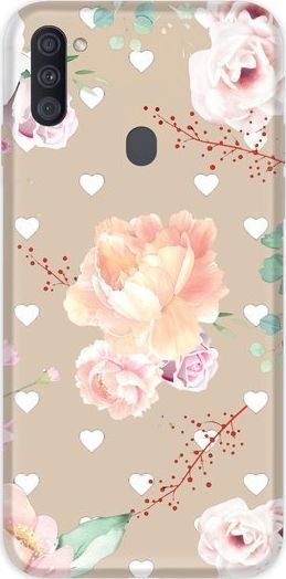CaseGadget CaseGadget ETUI NADRUK BIAŁE SERCA I RÓŻE SAMSUNG GALAXY A11 standard