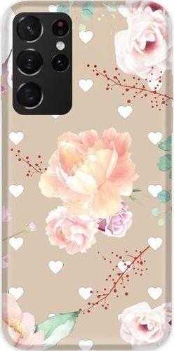 CaseGadget CaseGadget ETUI NADRUK BIAŁE SERCA I RÓŻE SAMSUNG GALAXY S21 ULTRA standard