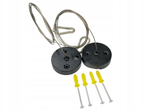 W skład zestawu wchodzi komplet zawiesi o długości 1,5 m, który zawiera wszystkie niezbędne elementy do montażu lamp STREAKBAY LED Line. Zestaw jest przystosowany do jednej lampy i zawiera kołki montażowe, co znacząco ułatwia proces instalacji.