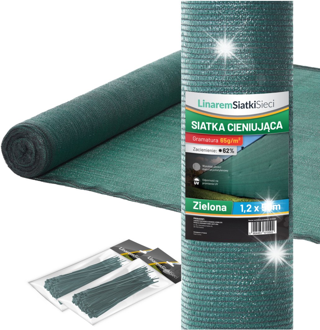 Siatka cieniująca o wymiarach 1,2x25m to znakomity wybór do osłony ogrodzeń, oferująca 62% zacienienia. Wykonana z polietylenu o podwyższonej gęstości (PEHD) o gramaturze 65g/m2, charakteryzuje się wysoką jakością oraz trwałością, co sprawia, że jest odporna na działanie promieni UV. To idealna opcja dla każdego, kto pragnie stworzyć estetyczną i funkcjonalną przestrzeń w swoim ogrodzie.