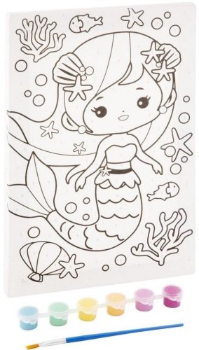 Malowanie po numerach. Wymiary rysunku: 29,7 x 19,5 cm z nadrukowanymi konturami. Wzór: Syrenka