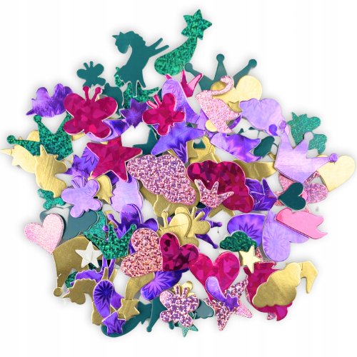 W zestawie znajdują się urocze wzory, takie jak serca, baletnice, motylki, kwiatki, chmurki, korony oraz jednorożce. Ta bogata różnorodność sprawia, że naklejki są idealne do wszelkich kreatywnych projektów, a dzieci mogą je wykorzystać do ozdabiania swoich prac plastycznych.