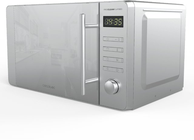 Kuchenka mikrofalowa Cecotec Proclean 5120 Flatbed wyróżnia się lustrzanymi drzwiami MirrorDoor oraz metalicznymi detalami, co nadaje jej nowoczesny i elegancki wygląd. To urządzenie nie tylko działa efektywnie, ale także doskonale prezentuje się w każdej kuchni.