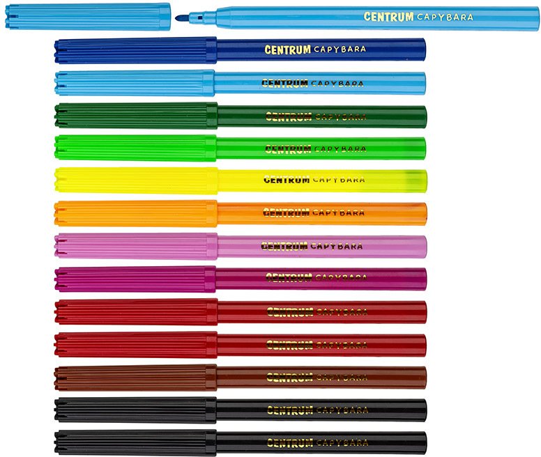 Flamastry Centrum Kapibara to zestaw 12 żywych flamastrów, które z pewnością zachwycą każdego młodego twórcę. Intensywne kolory umożliwiają dzieciom realizację ich najśmielszych artystycznych wizji, pozwalając na tworzenie pięknych rysunków i malowideł. Ten zestaw stanowi doskonałe narzędzie do rozwijania kreatywności oraz umiejętności plastycznych.