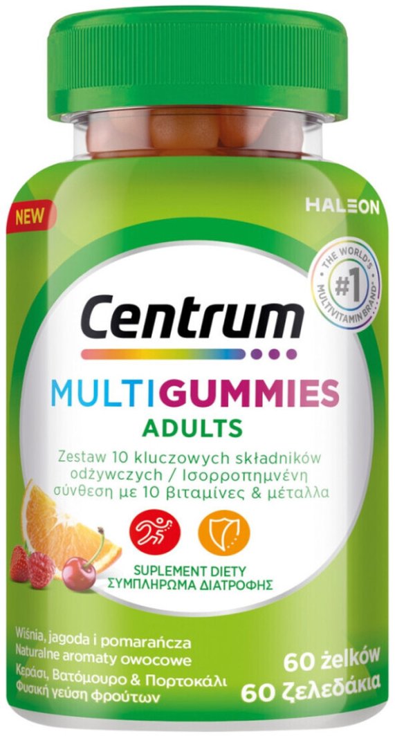 Centrum MultiGummies Adults to nowoczesny suplement diety, który łączy w sobie pyszne żelki owocowe z niezbędnymi składnikami odżywczymi. W opakowaniu znajduje się 60 żelków, które stanowią doskonałe rozwiązanie dla dorosłych, w tym kobiet, mężczyzn, seniorów oraz sportowców. Dzięki swojej wszechstronności, Centrum MultiGummies Adults może być świetnym uzupełnieniem codziennej diety.