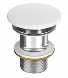 Korek ceramiczny biały, mechanizm wykonany z trwałego mosiądzu i wyposażony w silikonowe uszczelki. Dzięki temu elegancko się prezentuje, ale też jest szczelny i niezawodny, niezwykle prosty zarówno w montażu, jak i obsłudze. Kolor płaskiego grzybka idealnie zgrany z kolorem ceramiki. Przeznaczony do stosowania z umywalkami bez przelewu.