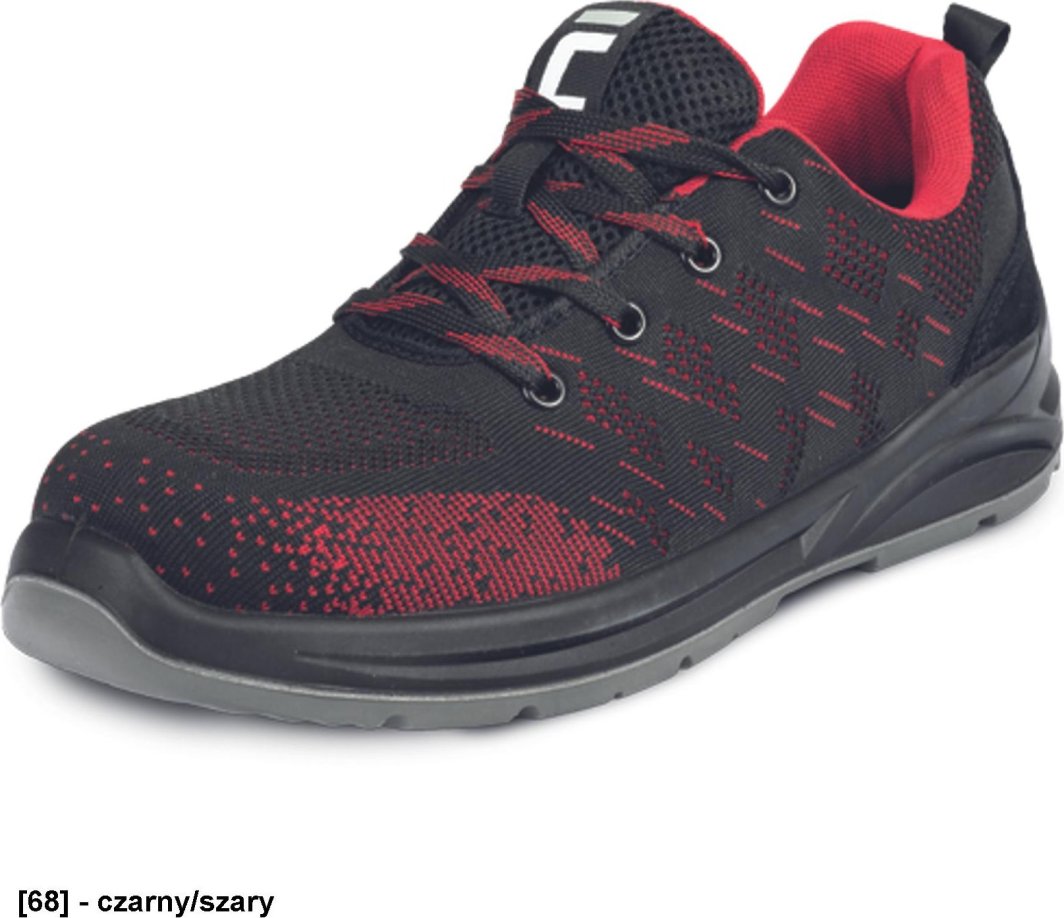 CERVA GERA S1 SR - Lekkie półbuty zawodowe robocze lekka tekstylna dziana cholewka metalowy podnosek i wkładka antyprzebiciowa - czarny/czerwony 48