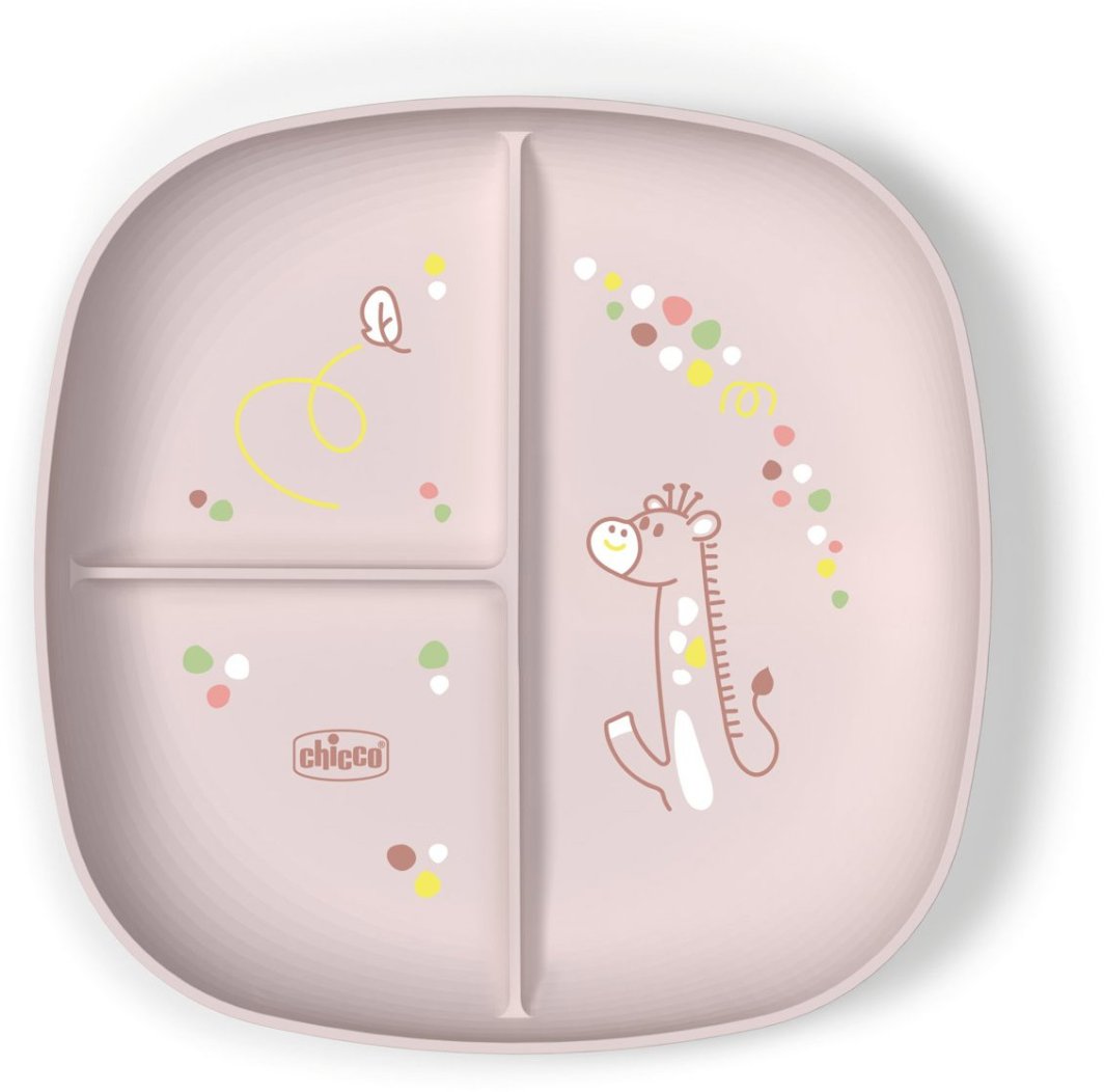 CHICCO-1600315- 3-DZIELNY TALERZ RÓŻOWY 8M+