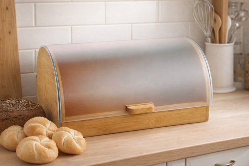 Chlebak Ambition Gordon to praktyczny i elegancki element wyposażenia kuchni, który łączy naturalne piękno bambusa z nowoczesnym wykończeniem półprzejrzystego tworzywa. Ciepły odcień drewna bambusowego wnosi do wnętrza przytulność i harmonijnie komponuje się zarówno z klasycznymi, jak i bardziej współczesnymi aranżacjami. Satynowa pokrywa ze stali nadaje całości nowoczesny, estetyczny charakter, dzięki czemu chlebak prezentuje się stylowo na kuchennym blacie.