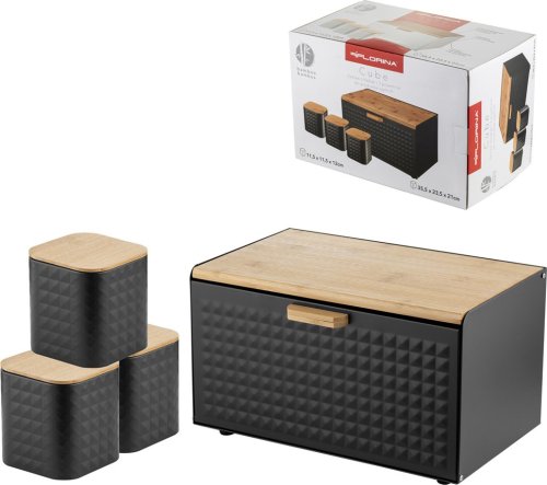 Chlebak Florina Zestaw kuchenny chlebak i 3 pojemniki na kawę herbatę cukier Florina Cube czarny