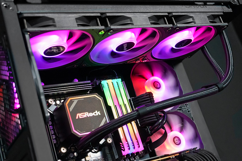 Chłodzenie wspiera technologię ASRock Polychrome SYNC, co umożliwia łatwą synchronizację efektów świetlnych z płytą główną i innymi komponentami. Dodatkowo produkt przeszedł rygorystyczne testy kompatybilności z oprogramowaniem SignalRGB, oferując zaawansowane opcje personalizacji i efekty reagujące na zdarzenia w grach. Użytkownik ma pełną kontrolę nad kolorystyką i dynamiką podświetlenia, co pozwala na pełną ekspresję własnego stylu.
