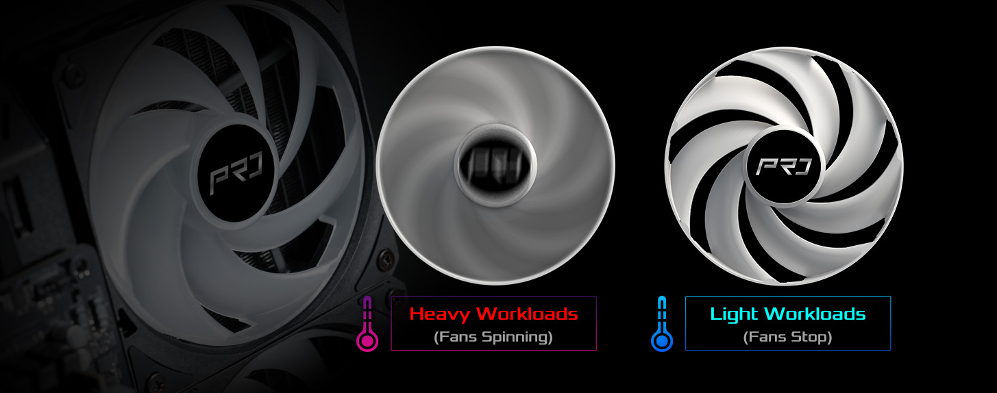 System chłodzenia ASRock został wyposażony w inteligentny tryb półpasywny, który pozwala na całkowite zatrzymanie wentylatorów przy niskim obciążeniu systemu. Dzięki temu podczas przeglądania internetu czy prac biurowych komputer pozostaje absolutnie bezgłośny, co znacząco poprawia komfort pracy. Rozwiązanie to wpływa również pozytywnie na żywotność łożysk wentylatorów, ograniczając ich zużycie mechaniczne.