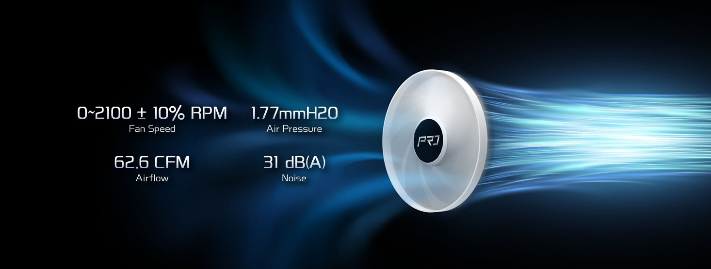 Zastosowane w zestawie wentylatory wyróżniają się wzmocnioną konstrukcją łopatek typu Ring-Frame, która optymalizuje koncentrację strumienia powietrza. Dzięki takiemu rozwiązaniu generowane jest wyższe ciśnienie statyczne, co pozwala na głębszą penetrację żeberek radiatora przez chłodne powietrze. Przekłada się to na znacznie lepsze wyniki temperatur nawet podczas maksymalnego obciążenia jednostki centralnej.