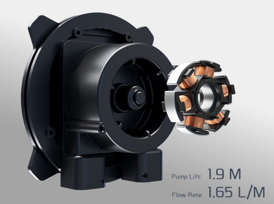 Sercem układu jest nowatorska pompa wyposażona w 3-fazowy, 6-slotowy i 4-polowy silnik, który gwarantuje mocny przepływ chłodziwa przy zachowaniu wysokiej trwałości. Zastosowanie komponentów klasy motoryzacyjnej pozwala na uzyskanie wyższej wydajności konwersji energii i minimalizację strat miedzi. Konstrukcja ta zapewnia niski poziom tętnień momentu obrotowego, co przekłada się na płynną i niezwykle stabilną pracę urządzenia przez długie lata.