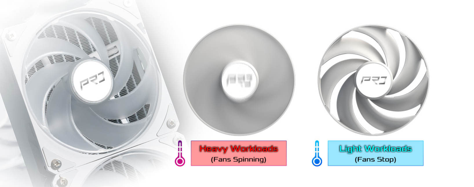 Zastosowane w zestawie wentylatory wyróżniają się wzmocnioną konstrukcją łopatek typu Ring-Frame, która optymalizuje koncentrację strumienia powietrza. Dzięki takiemu rozwiązaniu generowane jest wyższe ciśnienie statyczne, co pozwala na głębszą penetrację żeberek radiatora przez chłodne powietrze. Przekłada się to na znacznie lepsze wyniki temperatur nawet podczas maksymalnego obciążenia jednostki centralnej.