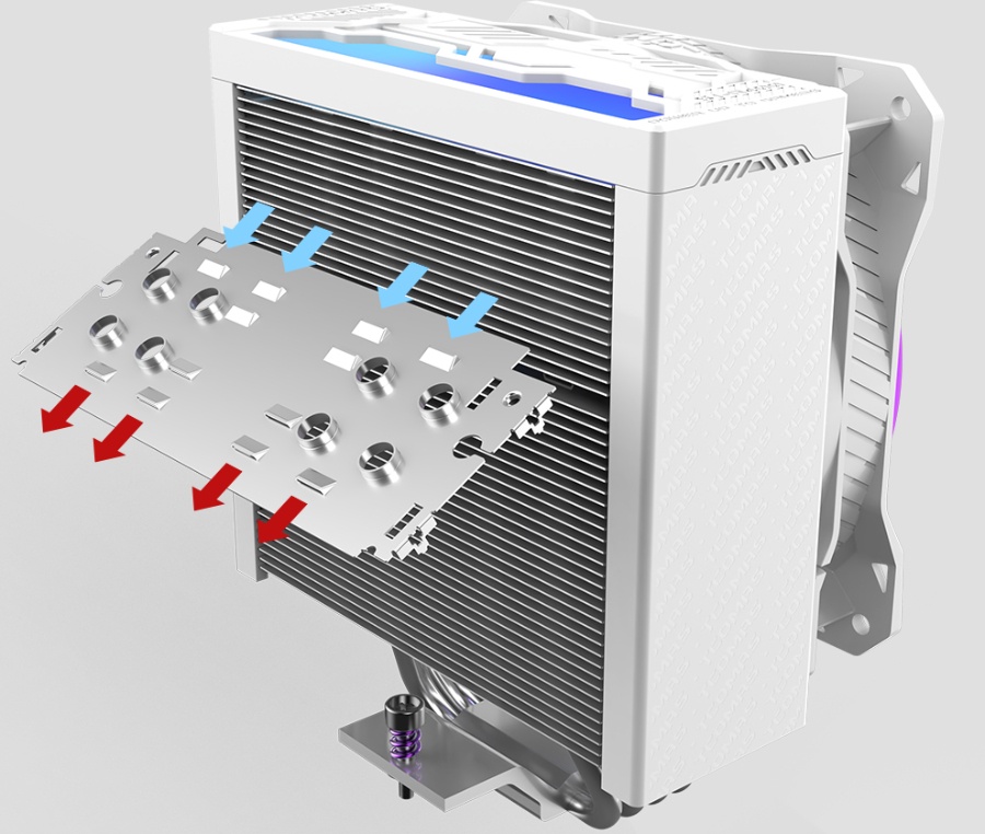 W sercu konstrukcji, cztery miedziane ciepłowody o średnicy 6 mm stykają się bezpośrednio z procesorem, błyskawicznie odprowadzając ciepło do solidnych, aluminiowych finów. Budowa radiatora o wymiarach 128×92×155 mm stanowi idealny balans między oporami przepływu a powierzchnią oddawania ciepła, podczas gdy górna pokrywa stanowi piękne zwieńczenie tej wyrafinowanej inżynierii. Wentylator montowany na ruchomych szynach pozwala na płynne ustawienie jego wysokości, dzięki czemu chłodzenie nigdy nie będzie kolidować nawet z najwyższymi modułami RAM.