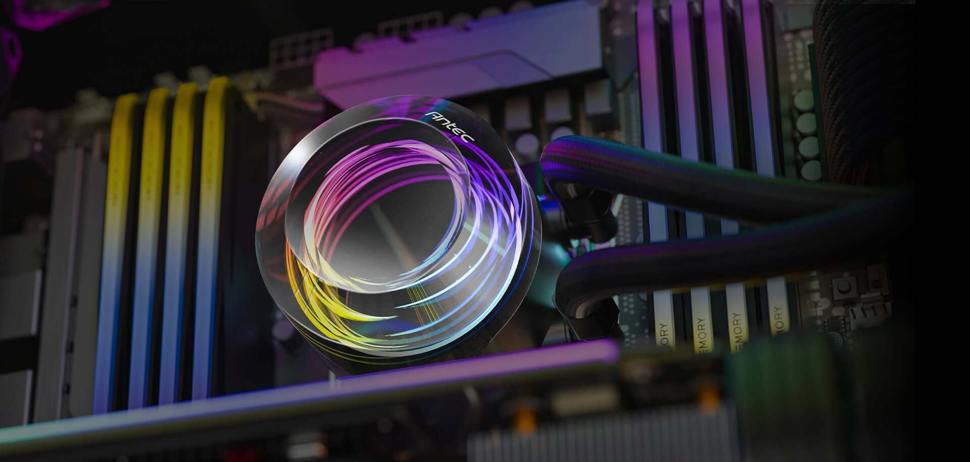 Zawieszona spiralna głowica pompy, inspirowana obrazem wiru, zapewnia wyjątkową wydajność chłodzenia i różnorodne efekty świetlne pod różnymi kątami. Dodatkowo, precyzyjnie opracowany kształt spiralnej głowicy optymalizuje przepływ cieczy, co znacząco podnosi efektywność całego systemu chłodzenia. Nowoczesne materiały użyte w konstrukcji gwarantują nie tylko trwałość, ale również estetyczny wygląd, doskonale wpisujący się w futurystyczne aranżacje wnętrz.