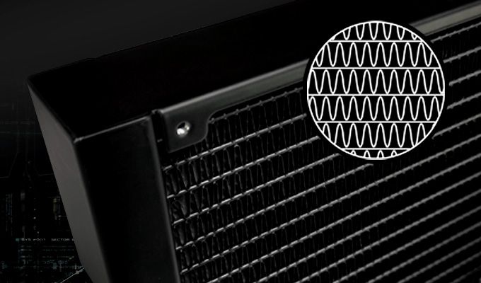 W przeciwieństwie do większości producentów systemów chłodzenia cieczą typu „wszystko w jednym”, polegamy na grzejnikach o grubości 38 mm i dużej gęstości żeber. Pozwala to na użycie większej ilości wody w obiegu i znacznie zwiększa powierzchnię chłodzenia. Woda ma znacznie większą pojemność cieplną niż aluminium czy miedź. Prowadzi to do wolniejszego i nawet o 5°C niższego wzrostu temperatury w ograniczonym czasowo trybie turbo nowoczesnych procesorów.