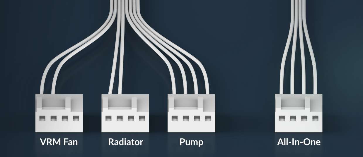 Za pomocą kabla rozdzielającego pompę, wentylator VRM i wentylatory radiatora można sterować oddzielnie lub zsynchronizować za pomocą jednego sygnału PWM z kablem all-in-one. Przed instalacją sprawdź kompatybilność obudowy – Liquid Freezer wymaga co najmniej 63 mm przestrzeni.