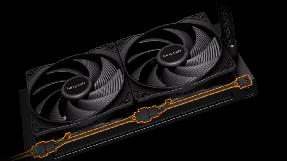 Jeśli chcesz podłączyć więcej wentylatorów, niż twój system ma złącz, masz problem. System chłodzenia wodnego z pompą i 2 wentylatorami na górze obudowy może łatwo osiągnąć maksimum dostępne na płycie głównej. Funkcja daisy chain w Pure Loop 3 240mm pozwala na szeregowe połączenie wszystkich wentylatorów. Zapewniamy mniejszą liczbę złącz i krótsze kable, aby pomóc Ci uzyskać bardziej przejrzysty wygląd.