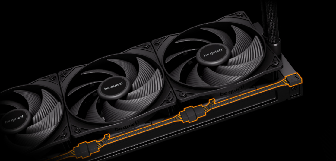 3 wentylatory Pure Wings 3 120mm PWM high-speed zapewniają wysokie ciśnienie powietrza, aby skutecznie chłodzić ciecz chłodnicy Pure Loop 3 360mm. Wentylatory są również wyposażone w funkcję "silnika w zamkniętej pętli". Funkcja ta zawsze utrzymuje stałą prędkość wentylatora, bez względu na opór - idealne rozwiązanie dla radiatorów. Pomimo swojej wydajności, Pure Wings 3 oferują bardzo cichą pracę. Nawet przy maksymalnej prędkości wentylatory pracują na poziomie zaledwie 35,2 dB(A). Specjalnie zaprojektowany wylot powietrza w kształcie lejka jest czymś więcej niż tylko wisienką na torcie: maksymalizuje przepływ powietrza przez żebra.