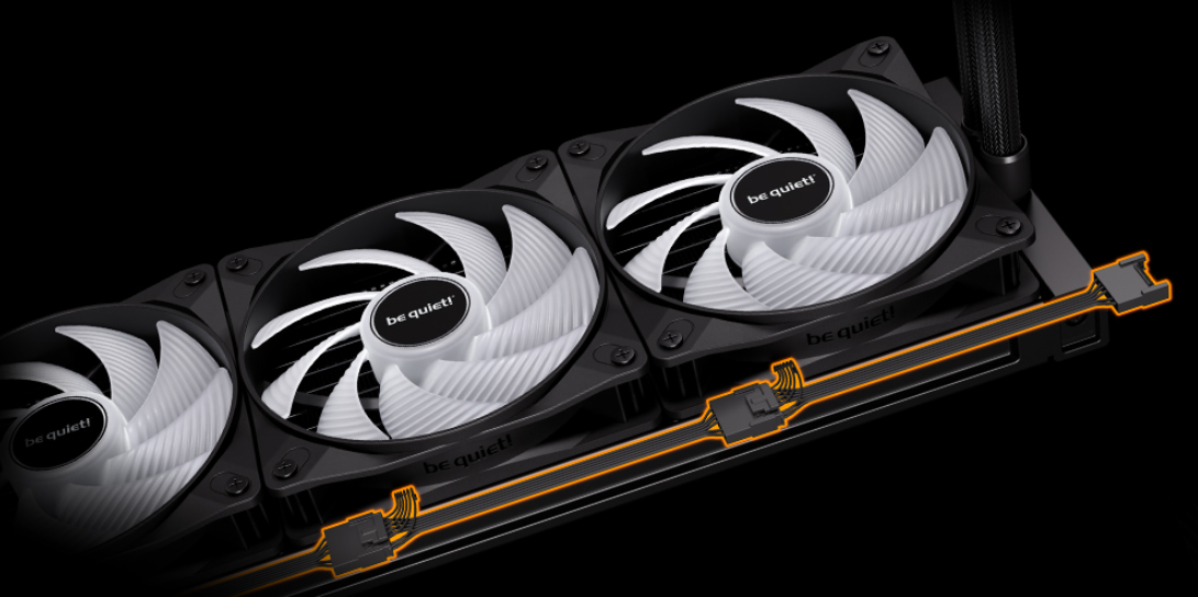 Pure Loop 3 LX 360mm posiada 3 wentylatory Light Wings LX 120mm PWM high-speed. Są one wyposażone w 16 diod LED, które doskonale rozpraszają światło na łopatkach wentylatora i są kluczem do oszałamiających efektów wizualnych, jakie oferuje Pure Loop 3 LX 360mm. 9 zoptymalizowanych pod kątem przepływu powietrza łopatek wentylatora nie tylko redukuje turbulencje generujące hałas, ale także zapewnia, że Light Wings LX 120mm PWM high-speed zapewnia wydajność, która jest potrzebna, nawet w wymagających scenariuszach. Specjalnie zaprojektowany wylot powietrza w kształcie lejka jest czymś więcej niż tylko wisienką na torcie: maksymalizuje przepływ powietrza przez żebra. Wentylatory są również wyposażone w funkcję "silnika w pętli zamkniętej". Funkcja ta zawsze utrzymuje stałą prędkość wentylatora, bez względu na opór - idealne rozwiązanie dla radiatorów.