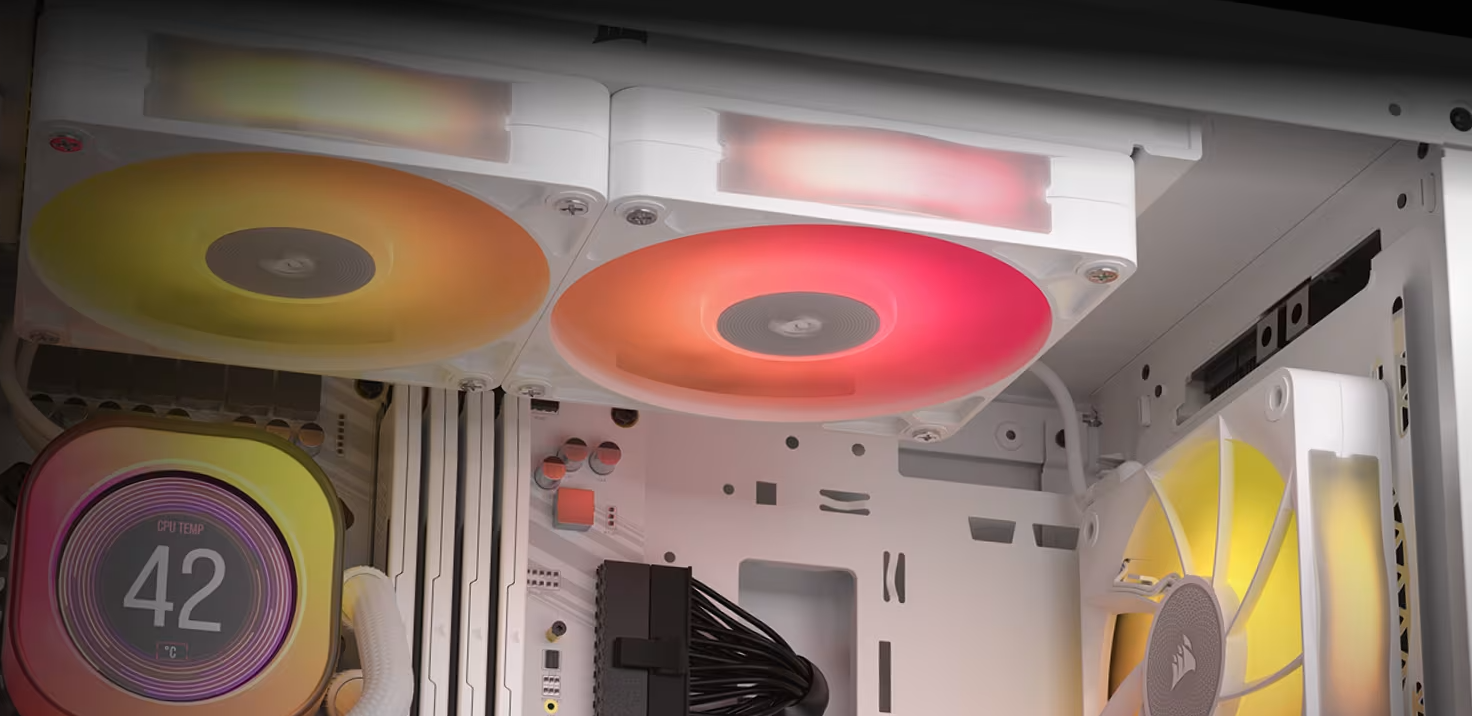 Podświetlenie wentylatorów: Osiem indywidualnie adresowalnych diod LED RGB na wentylator generuje hipnotyzujące efekty, które można łatwo synchronizować z podświetleniem pompki.