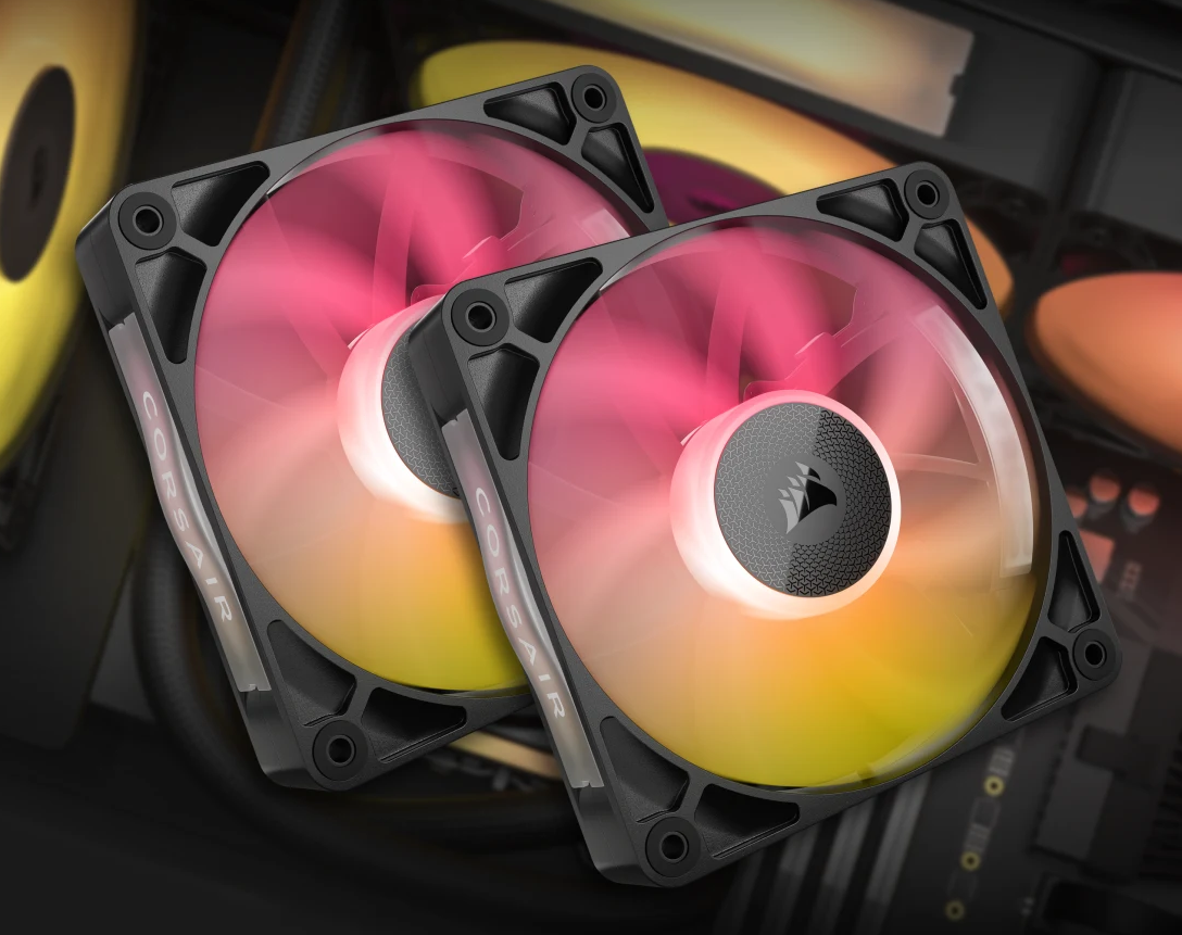 Odłączane panele boczne: Każdy wentylator RX RGB ma w komplecie parę ozdobnych paneli bocznych, umożliwiających wybór między półprzezroczystym okienkiem a napisem CORSAIR.