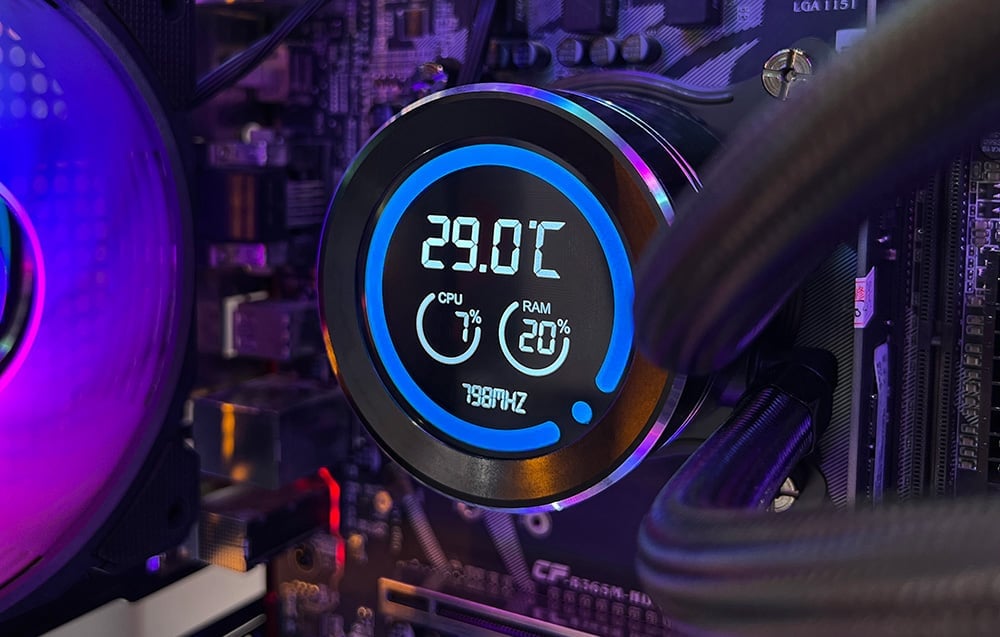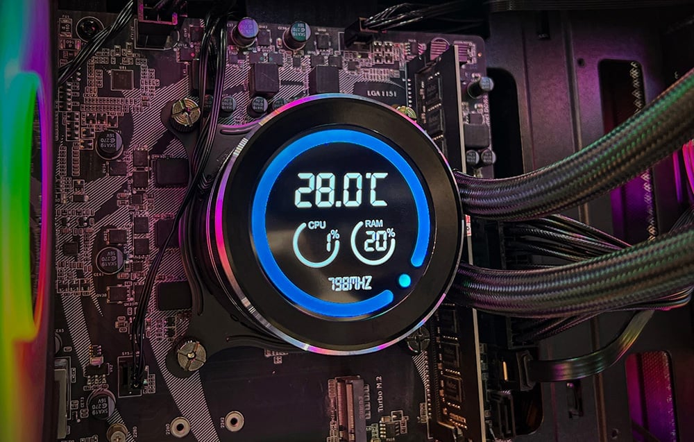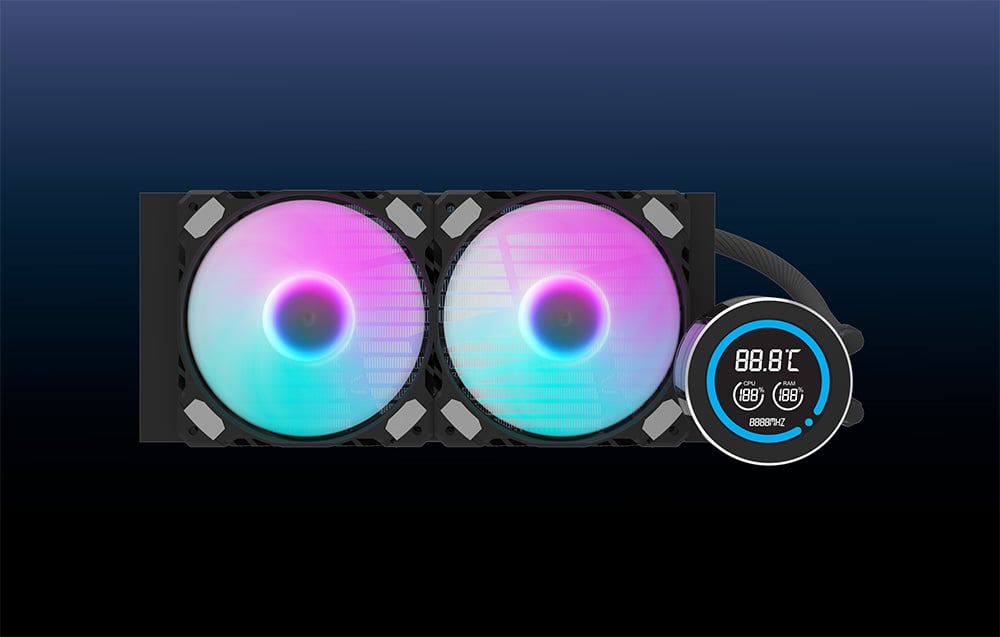 Na bloku wodnym znajduje się wyświetlacz LCD o przekątnej 2,1 cala, oferujący rozdzielczość 480x480 px i 16,7 miliona kolorów. Dostarcza on informacji o temperaturze procesora (CPU), pamięci RAM oraz prędkości pompy, co pozwala na monitorowanie parametrów bezpośrednio na chłodzeniu. Dzięki temu możesz łatwo dostosować system do swoich potrzeb.