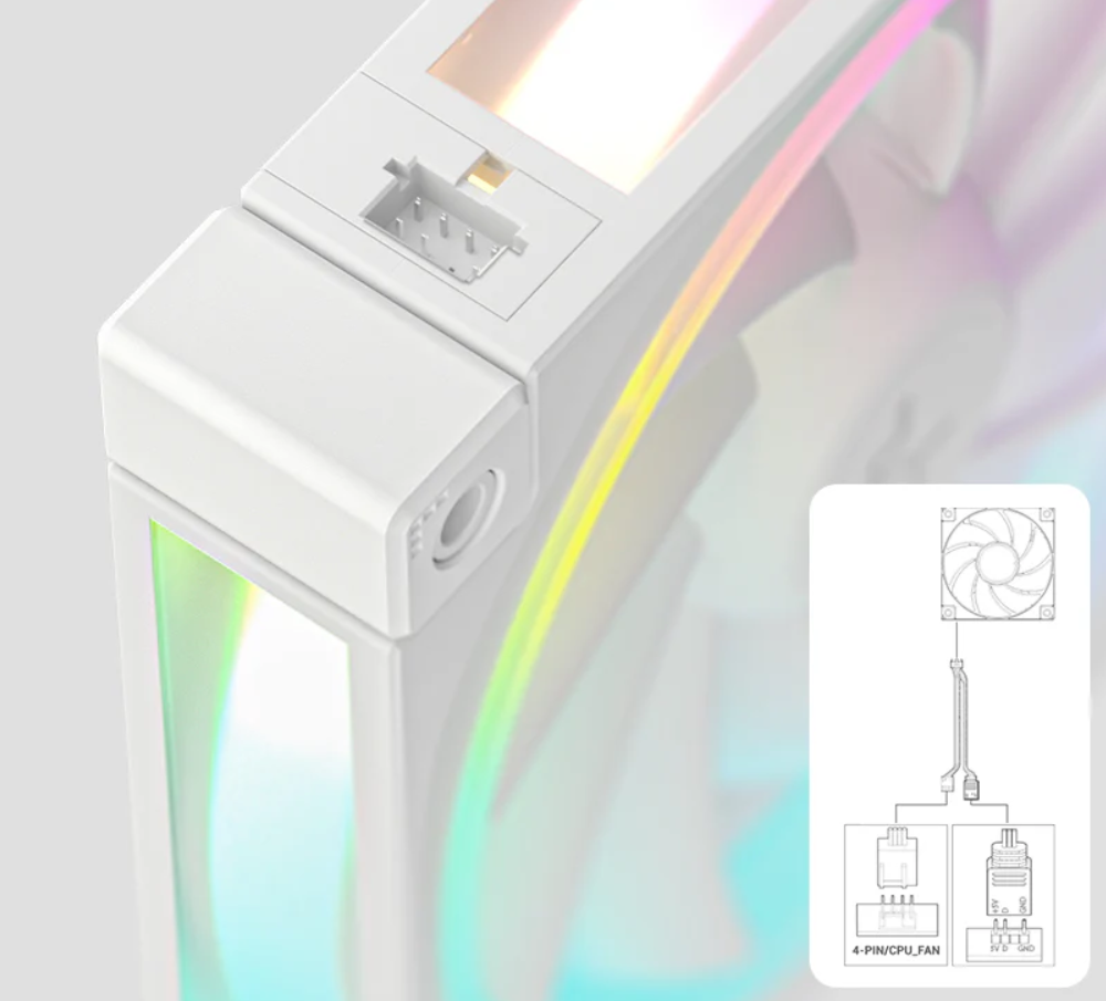 Głowica pompy ARGB Halo wraz z trio wentylatorów FD12 ARGB w LQ240 WH dodaje żywego blasku, przekształcając Twoją konstrukcję w wizualne arcydzieło. Dzięki pełnej personalizacji na wyciągnięcie ręki, możesz łatwo kontrolować i synchronizować efekty świetlne RGB za pomocą kompatybilnych płyt głównych i kontrolerów.