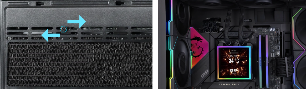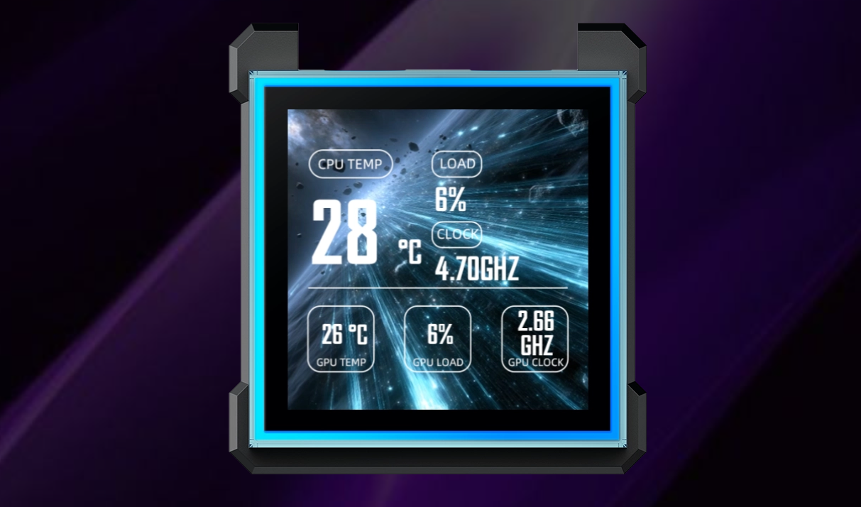 Zintegrowany ekran o rozdzielczości 480 x 480 pikseli zapewnia wyjątkową ostrość obrazu oraz jasność na poziomie 500 nitów, co gwarantuje czytelność nawet w mocno oświetlonych pomieszczeniach. Częstotliwość odświeżania 60 Hz sprawia, że animacje oraz odczyty parametrów systemowych w czasie rzeczywistym są wyświetlane niezwykle płynnie. Unikalną cechą jest magnetyczny system montażu typu hot-swap, wykorzystujący złącza pogo-pin. Rozwiązanie to pozwala na bezpieczne zdejmowanie i zakładanie wyświetlacza w dowolnym momencie, bez konieczności wyłączania komputera, co znacznie ułatwia proces instalacji i konserwacji.