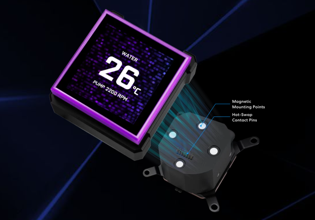 Centralnym punktem chłodzenia jest personalizowany ekran LCD o rozdzielczości 480x480 pikseli, umieszczony bezpośrednio na bloku wodnym. Użytkownik może na nim wyświetlać w czasie rzeczywistym parametry pracy systemu, takie jak temperatura procesora, prędkość obrotowa pompy czy obciążenie układu. Ekran obsługuje również pliki GIF, obrazy JPG oraz krótkie filmy MP4, co pozwala na pełną personalizację wyglądu jednostki centralnej. Dzięki wysokiej jasności na poziomie 500 nitów, wszystkie informacje pozostają czytelne nawet w mocno oświetlonych pomieszczeniach.