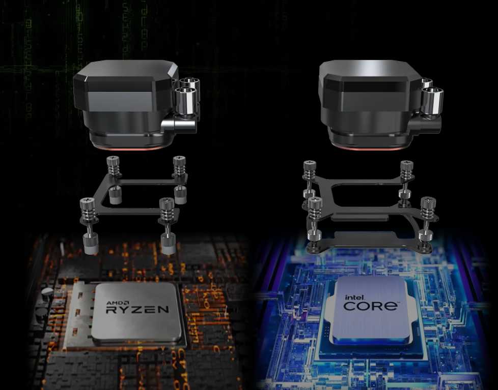 Sercem układu jest ulepszona pompa o wysokiej prędkości obrotowej, która zapewnia szybką cyrkulację chłodziwa między procesorem a chłodnicą. Radiator został zaprojektowany z gęstym ułożeniem aluminiowych finów, co znacząco zwiększa powierzchnię oddawania ciepła do otoczenia. Całość połączona jest elastycznymi, wzmocnionymi wężami z estetycznym oplotem, które minimalizują ryzyko parowania cieczy i ułatwiają montaż w różnych obudowach. Tak skonstruowany system gwarantuje stabilną pracę procesora nawet podczas długotrwałego, pełnego obciążenia.