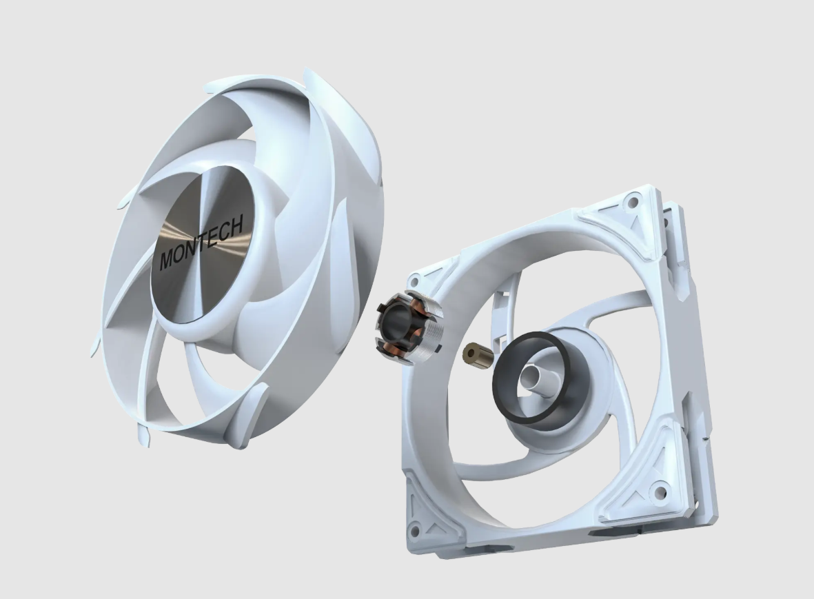W zestawie znajdują się trzy wentylatory Metal PRO 12 Silent, które bazują na poprzedniej wersji, ale oferują znaczną redukcję hałasu. Przy zachowaniu wysokiej wydajności (do 2200 obr./min i 72,3 CFM przepływu powietrza), udało się obniżyć poziom generowanego dźwięku. Maksymalny poziom hałasu wentylatorów to tylko 24,8 dBA, co gwarantuje wyjątkowo cichą pracę komputera nawet pod pełnym obciążeniem. Zastosowanie łożysk FDB (Fluid Dynamic Bearing) dodatkowo zwiększa trwałość i minimalizuje szumy.