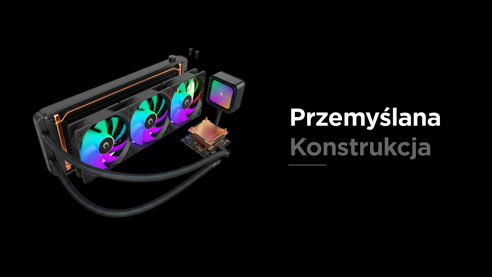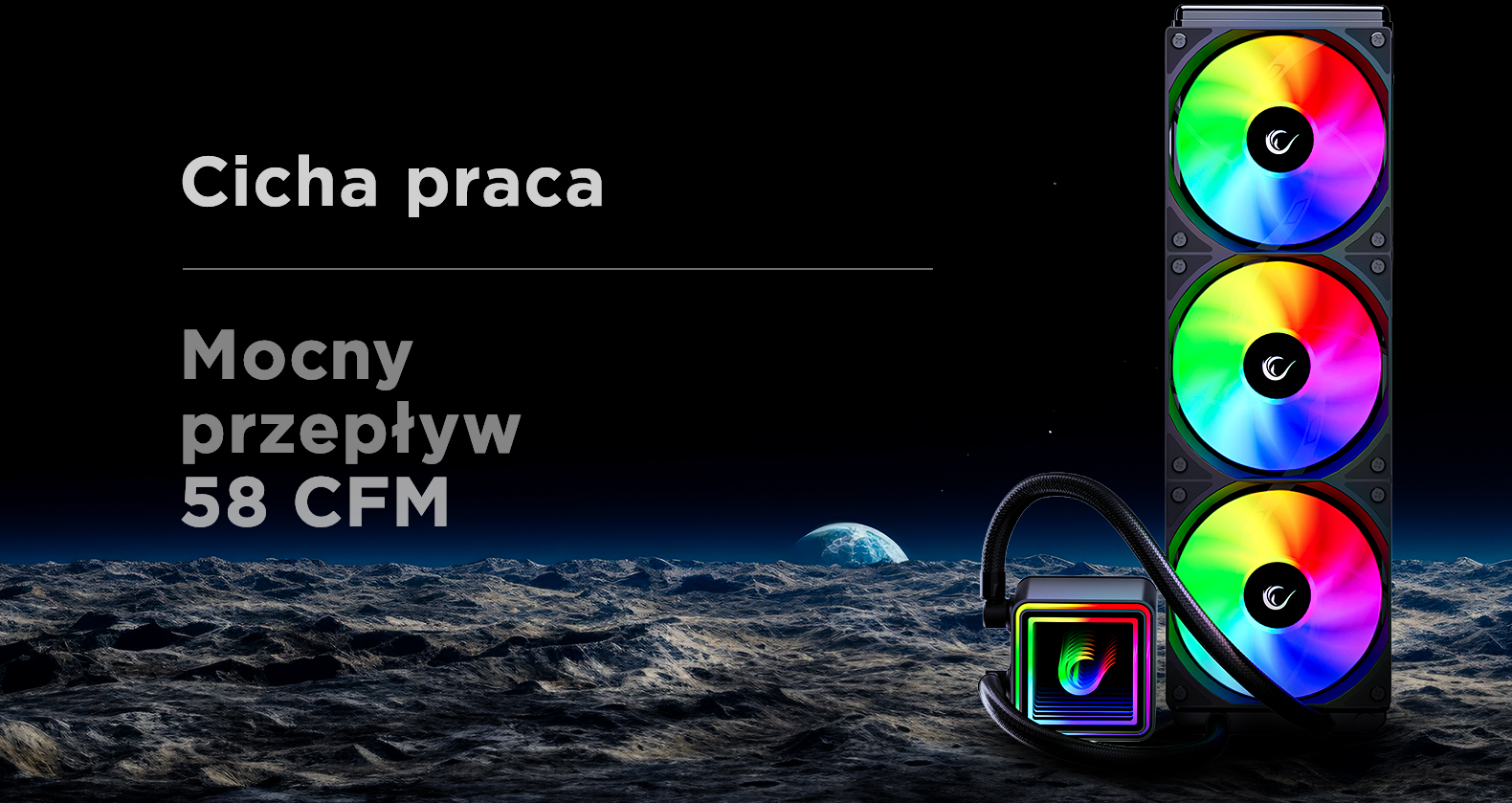 Blok wodny i trzy wentylatory wyposażono w podświetlenie ARGB, które dodaje Twojemu stanowisku wyjątkowego charakteru. Bez względu na to, czy preferujesz stonowany klimat, czy dynamiczne efekty świetlne – możesz dopasować wszystko pod własny styl. Sterowniki dostępne do pobrania na stronie producenta.