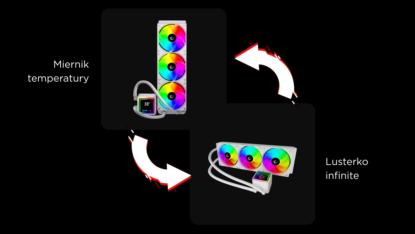 Na froncie bloku wodnego możesz zamontować Infinite Mirror dla głębokiego efektu świetlnego lub nakładkę z cyfrowym wskaźnikiem temperatury, by mieć pełną kontrolę nad pracą CPU. Obie opcje są podświetlane i dobrze widoczne w obudowach z oknem – możesz je też łatwo wymieniać w zależności od nastroju.