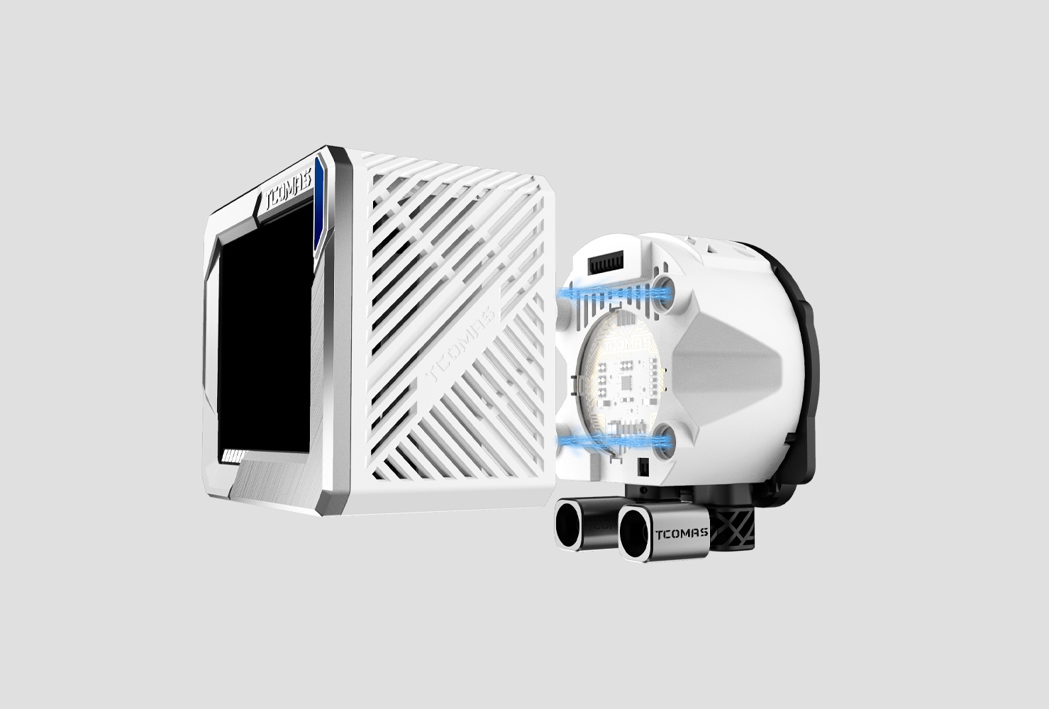 Jeżeli można wyobrazić sobie najbardziej luksusowe chłodzenie na świecie, to będzie to właśnie TCOMAS LG700 PRO, którego niemalże wszystkie możliwe do wykonania z metalu elementy, są aluminiowe. Obudowa pompy jest aluminiowa i skrywa w sobie wentylator, który schładza pamięć RAM i sekcję zasilania. Backplate? Aluminiowy. Mocowanie węży? Również aluminiowe. To chłodzenie to prawdziwy pokaz kunsztu produkcji komponentów.