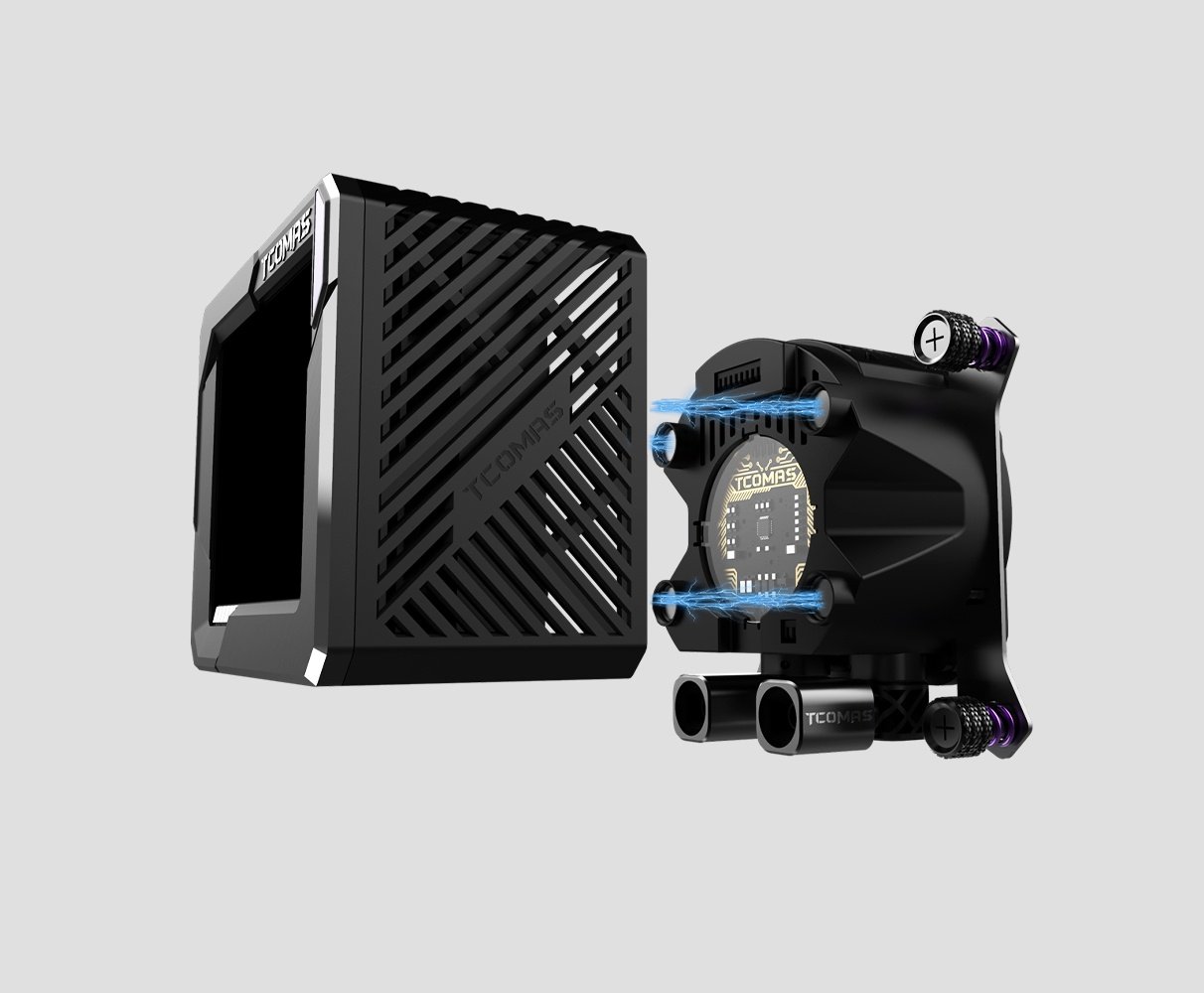Jeżeli można wyobrazić sobie najbardziej luksusowe chłodzenie na świecie, to będzie to właśnie TCOMAS LG700 PRO, którego niemalże wszystkie możliwe do wykonania z metalu elementy, są aluminiowe. Obudowa pompy jest aluminiowa i skrywa w sobie wentylator, który schładza pamięć RAM i sekcję zasilania. Backplate? Aluminiowy. Mocowanie węży? Również aluminiowe. To chłodzenie to prawdziwy pokaz kunsztu produkcji komponentów.