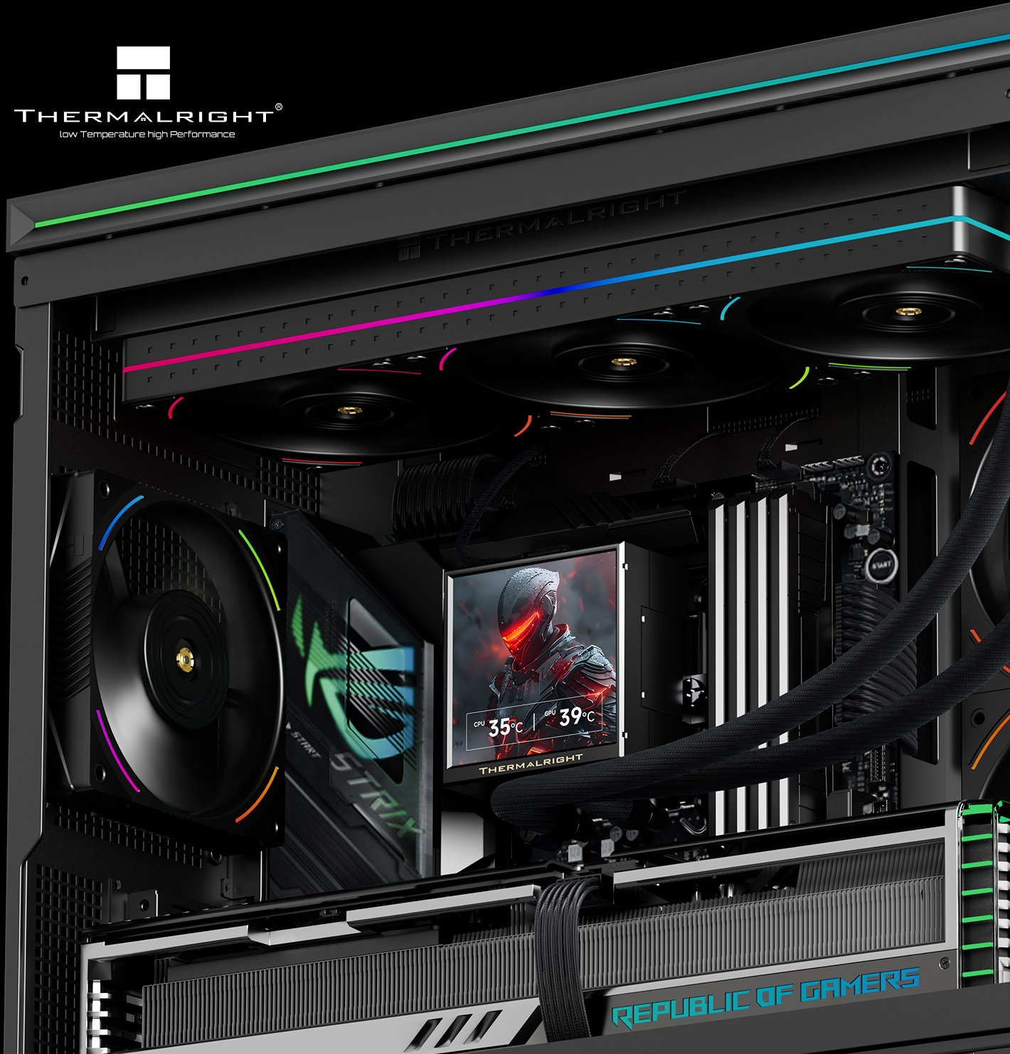 Prezentowany model chłodzenia wodnego to zestaw AIO stworzony z myślą o użytkownikach, którzy potrzebują maksymalnie efektywnego chłodzenia procesora w konfiguracjach generujących wysokie temperatury. Wersja UB (Ultra Boost) wyróżnia się trzema zintegrowanymi wentylatorami umieszczonymi w jednej, sztywnej ramie, co poprawia stabilność pracy i ułatwia instalację. Zestaw wyposażono również w radiator o długości 397 mm, pompę o wysokiej kulturze pracy oraz duży ekran LCD z przekątną 3,95 cala, który zapewnia wygodny podgląd parametrów systemowych w czasie rzeczywistym. Model jest ponadto kompatybilny z popularnymi podstawkami Intel i AMD, a jego montaż w komputerowej obudowie jest prosty i intuicyjny. Czytaj dalej i sprawdź, dlaczego jeszcze warto postawić na to właśnie chłodzenie wodne od Thermalright.