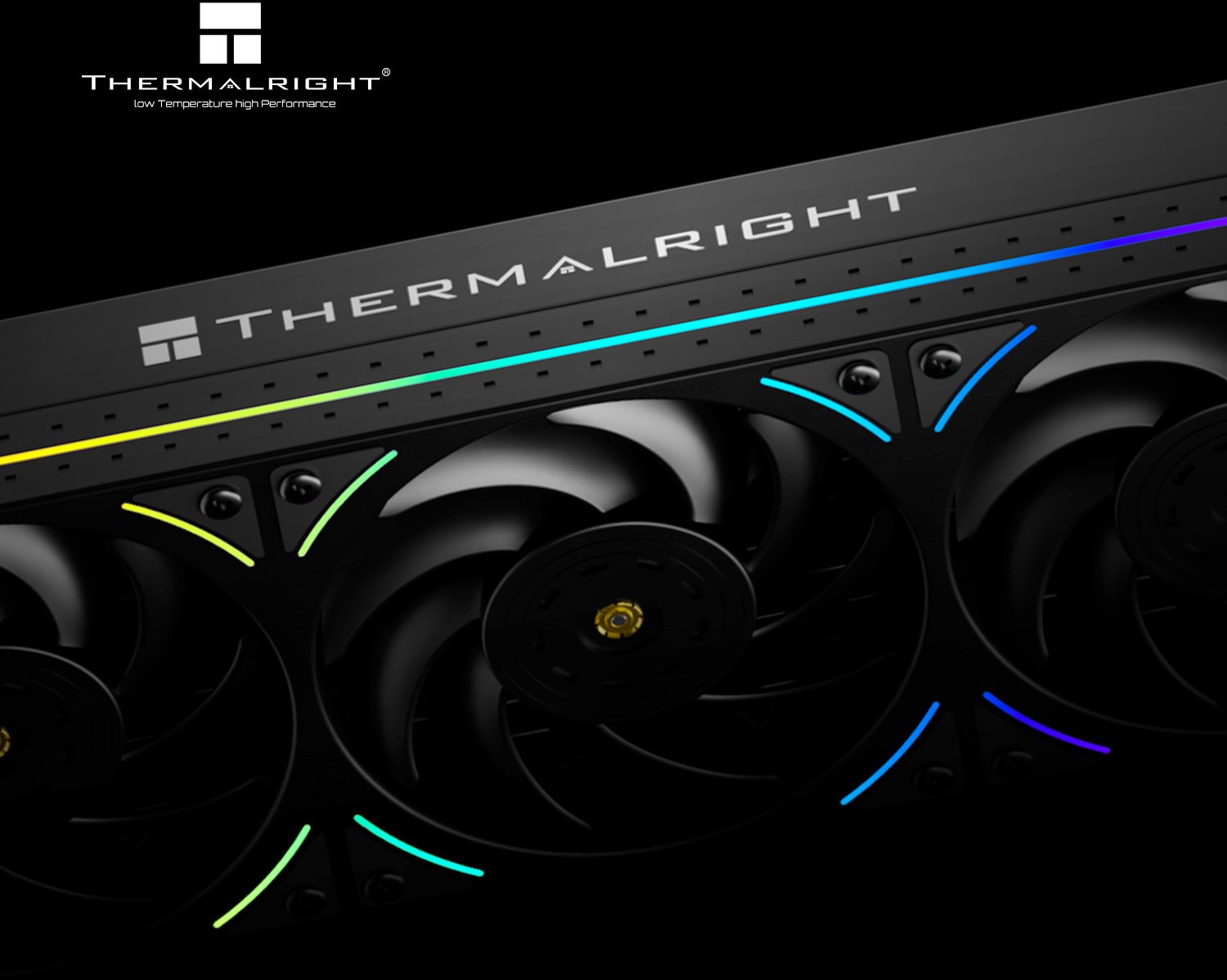 W chłodzeniu wodnym Thermalright Peerless Vision 360 UB ARGB BLACK zastosowano wentylator TL-UB36 – jednolity moduł składający się z trzech 120-milimetrowych wirników umieszczonych w jednej ramie. Dzięki temu konstrukcja pracuje stabilniej, generuje mniej wibracji i jest łatwiejsza w montażu niż trzy oddzielne wentylatory. Maksymalna prędkość 2150 RPM przekłada się na przepływ powietrza na poziomie 69 × 3 CFM oraz wysokie ciśnienie statyczne 2.87 mm H2O. Pozwala skuteczniej odprowadzać ciepło z gęstych finów radiatora.